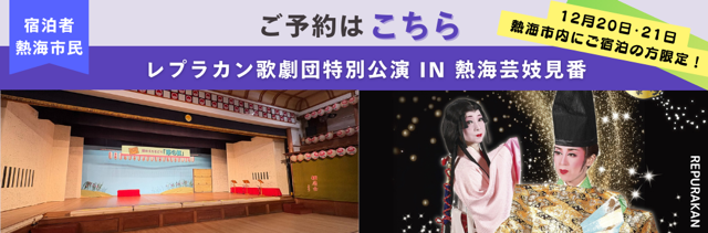 宿泊者特典:12月19日・20日・21日に熱海市内ご宿泊のお客様は 特別価格 3,500円 にてご案内いたします。